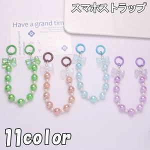 スマホストラップ ハンドストラップ キーホルダー 携帯ストラップ ビーズ リボン スマートフォン 携帯電話 落下防止 おしゃれ 可愛い プレゼント ギ