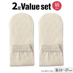 冷えとり靴下 2足セット 絹紬 冷え取り靴下 先丸ソックス×2 シルク レディース メンズ シルク100% 絹 ゴム選択可 かかとなし ゆったり 大きめ 日本製 841