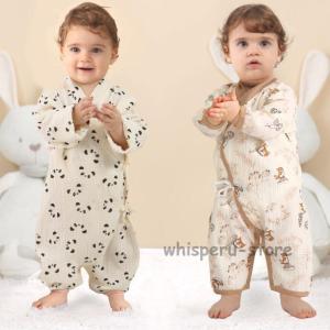 赤ちゃん カバーオール ベビー ロンパース ガーゼ 長袖 浴衣 可愛い おしゃれ 出産祝い ベビー服 パジャマ 新生児 お宮参り 退院 写真撮影 出産準備 パンダ