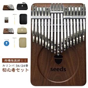 34音 カリンバ 初心者セット 24音 初心者向け 二段の半音付き C調 打楽器 パーカッション 天然木製 親指ピアノ 楽器 演奏 初心者 入門 指ピ