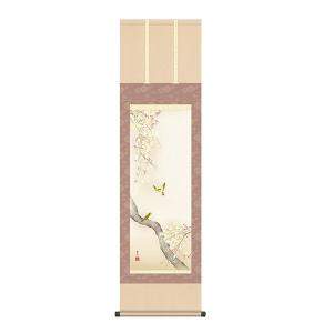 掛け軸 紅白梅に鶯 田村竹世 尺五 掛軸 全国送料無料