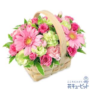 【結婚記念日】花キューピット 夫婦 祖父母 一周年 花婚式 銀婚式 金婚式 ギフト プレゼント ピンクウッドバスケットアレンジ