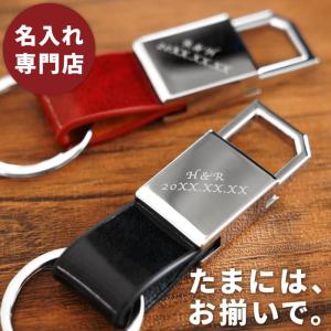 クリスマス プレゼント キーホルダー 名入れ 名前入り ギフト グロスメタル キーリング ペア 本革 レザーキーホルダー 誕生日 妻 嫁 旦那 結婚記念日 夫婦