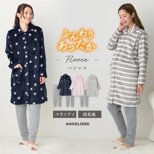 マタニティパジャマ 授乳服 妊婦 前開き 長袖 冬 入院着 もこもこ あたたか サイドスリット トップス 裏起毛パンツ あったか レギンス エンジェリーベ