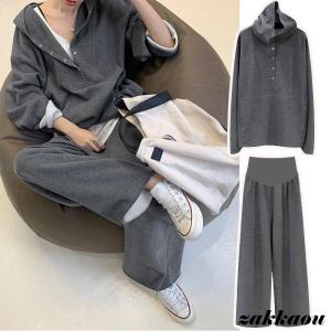 マタニティー セットアップ パーカー ワイドパンツ パジャマ スウェット 妊婦服 授乳口 ルームウェア 長袖 妊婦服 冬 秋 春 入院着 産前産後 普段着 お出かけ