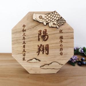 山桜 名前札 鯉のぼり 子供の日 端午の節句 男の子 木札 立札 節句 初節句 節句祝い 出産祝い 命名 名前旗 兜 高級 プレゼント ギフト 名入れ オーダーメイド