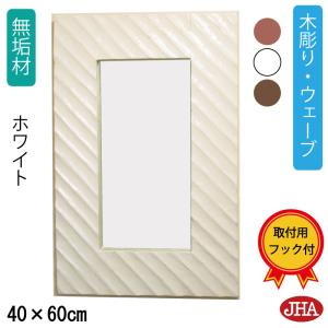 JHAアンティークミラー (デラックス) ウッディ・モダン・木彫りミラー(ウェーブ)W400×H600(ホワイト)壁掛け鏡 ウォールミラー バリ島 洗面 トイレ