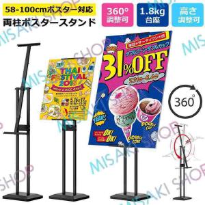 【58-100cmポスター対応】両柱 立て看板 ポスタースタンド 360°調整 1.8kg台座 看板 高さ調整可能 大型台座 組み立て簡単 メニュース/パネルスタンド 掲示板