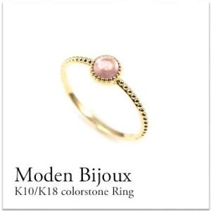指輪 リング レディース K18 カラーストーンリング カボションカット 1粒 ミル打ち クラシカル 1粒リング
