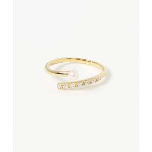 指輪 リング フォークピンキー ジルコニア×パール レディース