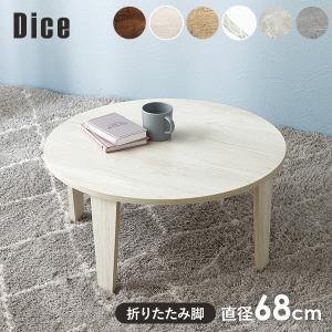 テーブル 折りたたみ 小さい 折りたたみテーブル 机 丸 おしゃれ 小さめ 折れ脚テーブル センターテーブル 丸型 ローテーブル 白 直径68cm ダイス