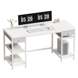 YeTom デスク 机 pcデスク 勉強机 ゲーミングデスク パソコンデスク 幅140*奥行55cm ラック付き 引き出し付き 収納ラック付き 白い