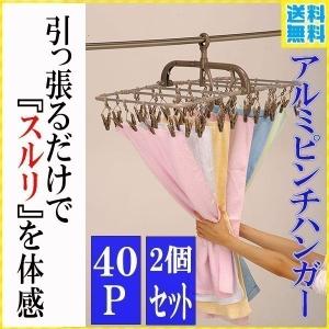 洗濯バサミ アルミ 引っ張るだけ 収納 40 ピンチハンガー フック付き 洗濯干し 洗濯物 角型 片手 部屋干し 物干しピンチハンガー 洗濯バサミハンガー