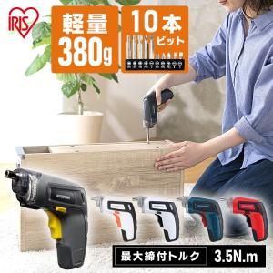 電動ドライバー 小型 ビット 充電式 LEDライト付き セット 電動ドリル コードレス コンパクト ドライバー ドリル JDD352-H アイリスオーヤマ