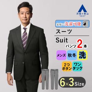 【洋服の青山】秋冬 ブラック系 スタンダードスーツ【ツーパンツ】【ウォッシャブル】 CHRISTIAN ORANI メンズ ビジネス 長袖 標準体 ワンタック 織柄 2ボタン