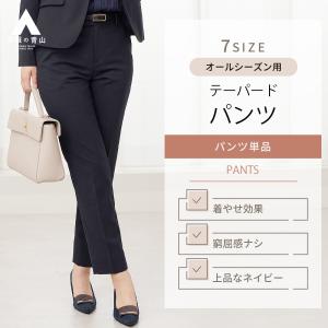 【洋服の青山】テーパードパンツ レディース セットアップ着用可【裾上げ済み】 ネイビー 紺 ロング丈 10分丈 パンツ ボトムス スラックス きれいめ 上品