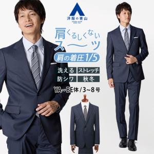 【洋服の青山】肩くるしくないスーツ 疲れない メンズ スリム 秋冬 ネイビー 紺 織柄 無地 シングル 2ボタン 総裏 ノータック 洗える ストレッチ 動きやすい