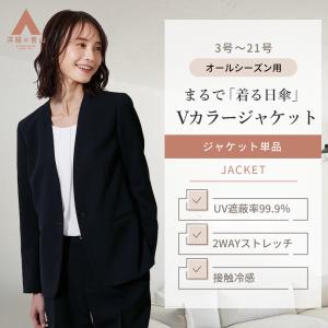 【洋服の青山】Vカラージャケット レディース オールシーズン ネイビー 紺 織柄 セットアップ可 スーツ 1ボタン 洗える 涼しい 接触冷感 動きやすい ストレッチ