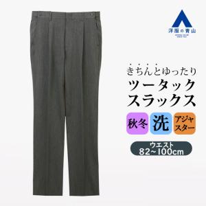 【洋服の青山】アジャスター スラックス メンズ ゆったり 秋冬 グレー 灰色 大きいサイズ ワンタック 洗える ストレッチ 動きやすい 動ける ビジネス ビジカジ
