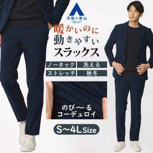 【洋服の青山】コーデュロイ スラックス メンズ 秋冬 ネイビー 紺 セットアップ 単品 スーツ 大きいサイズ 洗える 動きやすい シワになりにくい 暖かい ビジカジ