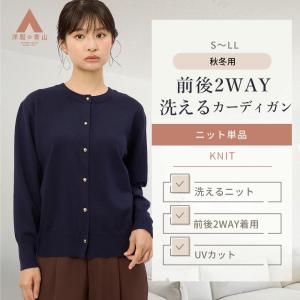【洋服の青山】前後2WAY 洗える カーディガン 長袖 レディース 秋冬 ネイビー 紺色 クルーネック ゴールドメタルボタン 天竺 ウォッシャブル UVカット