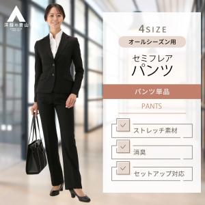 【洋服の青山】セットアップ可能 セミフレアパンツ レディース ブラック 無地 ストレッチ 消臭 ビジネス 就活 スーツ リクルート n-line Precious 831