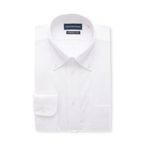 【洋服の青山】オールシーズン ホワイト系 ボタンダウンスタンダードワイシャツ 長袖 ボタンダウン ボックスプリーツ