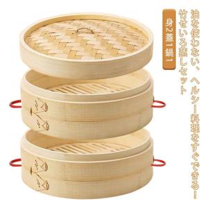 【即納】せいろ 21cm 蒸籠 蒸し器 セイロセット 2段 蓋付き 蒸し板付き 中華せいろ 蒸し野菜 点心 小籠包 ヘルシー 家庭用 天然竹 蒸し料理