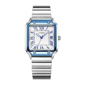 【並行輸入品】 クラシックなスクエアウォッチ、男性用ローマ数字カジュアルウォッチ。, シルバー-ブルー。