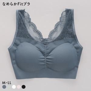 ブラジャー サンエイ SANEI なめらかFit 肩レース付きノンワイヤーブラ ハーフトップ M L L 脇肉 すっきり 脇寄せ もっちりカップ ナイトブラ 単品