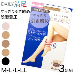 福助 デイリー満足 着圧 ストッキング 3足組 M-L・L-LL パンスト 黒 ベージュ 着圧ストッキング レディース 引き締め ゾッキ