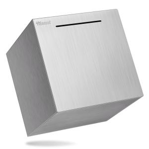 1000万円 貯まる正方形 貯金箱|大容量メタルバ|ンクまずは1000万円貯められる|19x19x19cm,シルバー