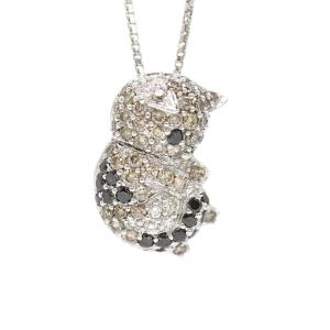 K18WG 猫 ダイヤモンドネックレス 0.95ct 18金 ホワイトゴールド 動物 三毛猫 23121