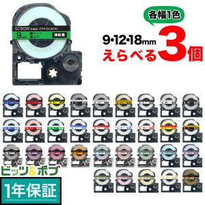 テプラテープ 9mm 12mm 18mm 互換 テプラプロ テプラ PRO テープ 強粘着 フリーチョイス 白 カラーラベル など全34色 色が選べる3個セット キングジム用