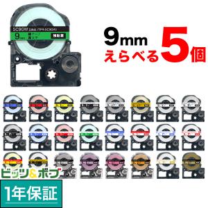 テプラテープ 9mm 互換 テープ テプラプロ テプラ PRO フリーチョイス 強粘着 カラーラベル 全22色 色が選べる5個セット キングジム 用