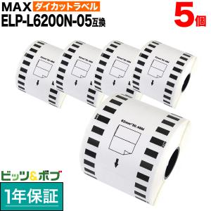 本日ポイント10倍 マックス用 感熱紙ラベル 無定長ラベル ELP-L6200N-05 互換品 宛名ラベル 白 62mm×34m 5個セット