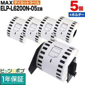 本日ポイント10倍 マックス用 感熱紙ラベル 無定長ラベル ELP-L6200N-05 互換品 宛名ラベル 白 62mm×34m 5個+ホルダー1個セット