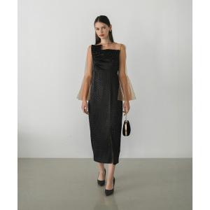 ドレス 「LEJA」ストーンフレアスリーブドットスリットIラインドレスワンピース美脚効果結婚式 パーティードレス 成人式 二次会 同窓会 お呼ばれ オ