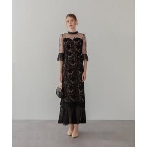 ドレス 「LEJA」フラワーレースドットストーンチュールIラインワンピースドレス美脚効果結婚式 パーティードレス 成人式 二次会 同窓会 お呼ばれ オ