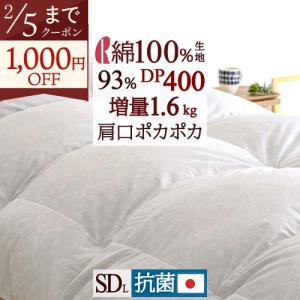 羽毛布団 セミダブル ロマンス 小杉 西川掛カバー特典付 DP400 掛け布団 日本製 ダウン93% 増量1.6kg 抗菌 花粉 ダニ対策