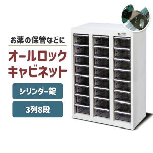 キャビネット 薬局 配薬 与薬 調剤薬局 オフィス 鍵付き 3列 8段 大容量 収納棚 棚 事務所 透明 引き出し 事務 オフィス家具 シリンダー錠 介護施設 MLBC-024C