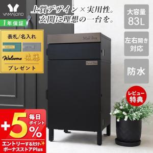 宅配ボックス ポスト付き 一戸建て用 自宅用 両開き ステンレス おしゃれ 一体型 置き型 ポスト 大容量 印鑑ケース ブラック Kures