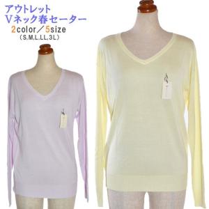 ニット セーター Vネック 送料無料 メール便発送 P23 訳有りアウトレット ネームカット 春セーター 薄地セーター ドロップショルダー イエロー ピンク M L LL