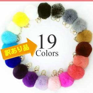 【訳あり品】リアル ラビット ファー ポンポン チャーム 8cm ゴールド キーチェーン