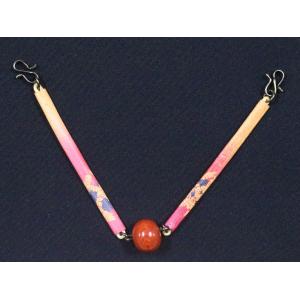 羽織紐 女性用 hh-355 茶・ピンク地【訳有り/中古品】