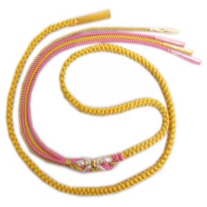 【訳有り 少難あり】 帯締め 帯〆 パールビーズ飾り付 正絹 山吹黄色 先割れ 3色使い 振袖 成人式 着物 帯じめ 振袖用