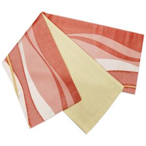 (訳有り 少難あり) 袋帯 お仕立て上がり 薄朱赤色地ひったライン 金糸入り 全通柄 振袖 成人式 着物 長尺