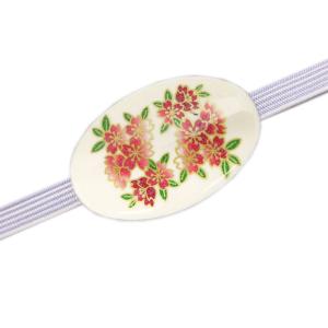 【訳有り 少難あり】 帯留め 帯止め 漆塗蒔絵風 オフホワイト白色地桜葉 木製 着物 きもの 浴衣 帯どめ 桜柄