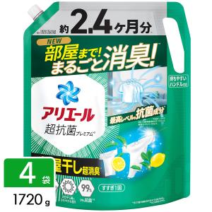 【最大1200円OFF(LYP会員限定)】【ケース販売】アリエール 洗濯洗剤 液体 超抗菌プレミアム 部屋干し超消臭 天日干し級にさわやかな香り 詰め替え 1720g×4袋