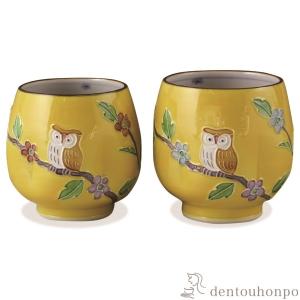組湯呑 黄交趾ふくろう ペア ( 木箱名入れ有料 退職祝い 定年 湯呑み 湯のみ セット 湯飲み おすすめ セット 清水焼 京焼 結婚 出産 内祝い 引き出物 金婚式 )
